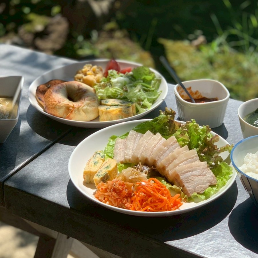 ポッサム定食や数種類のお豆腐ベーグル、ケーキや焼き菓子など