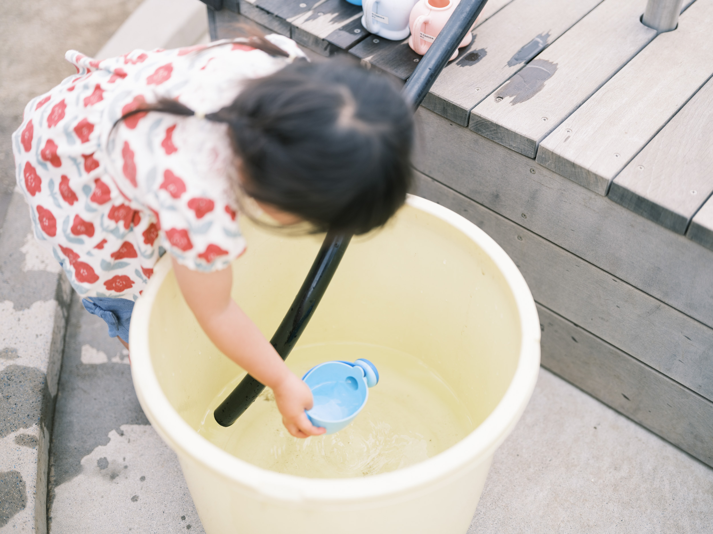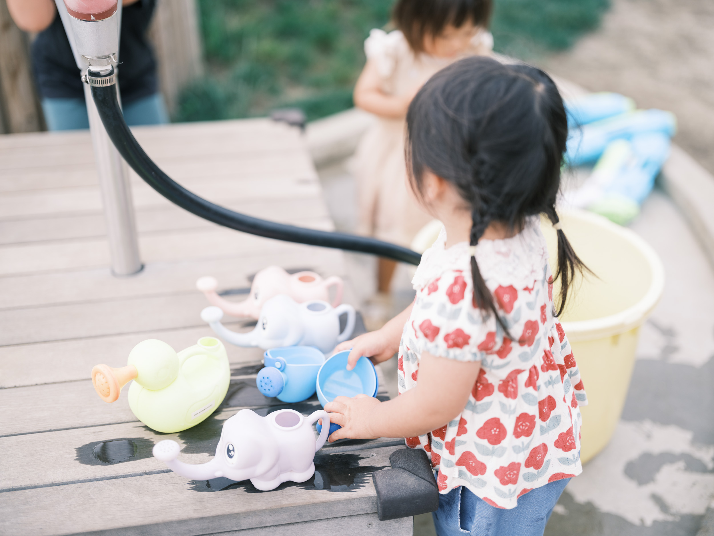 草木や土や水と触れあえるお庭で、 夢中になれるこども時間を。 お子さん用の手足洗い場をご用意しています。