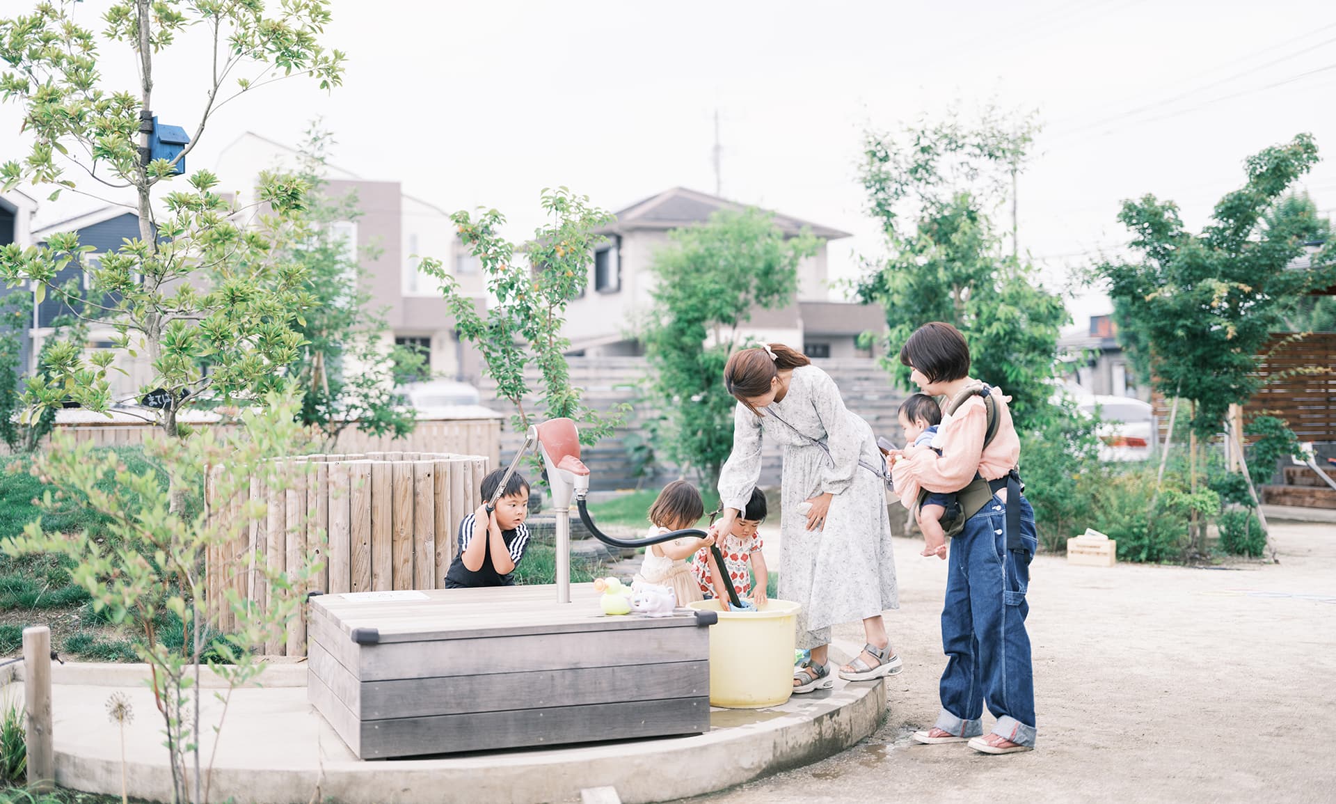 草木や土や水と触れあえるお庭で、 夢中になれるこども時間を。 お子さん用の手足洗い場をご用意しています。